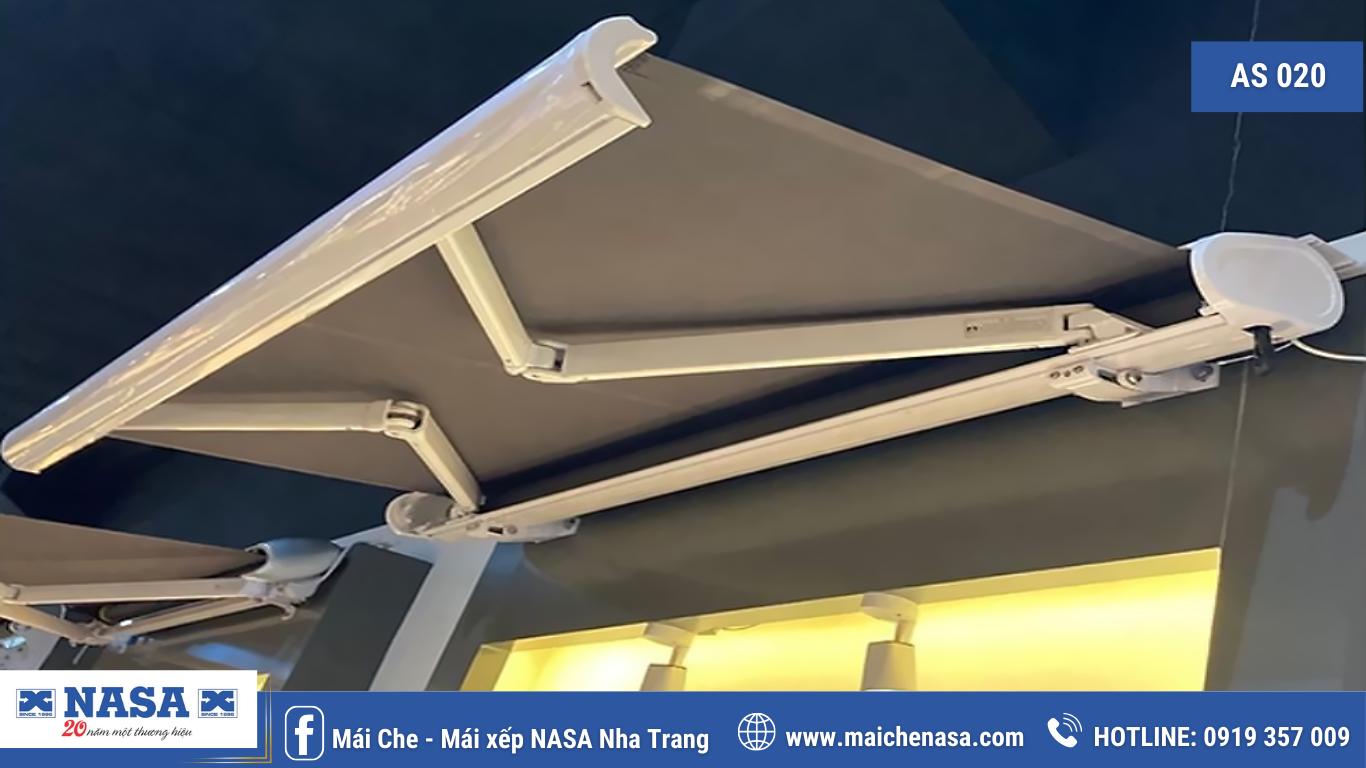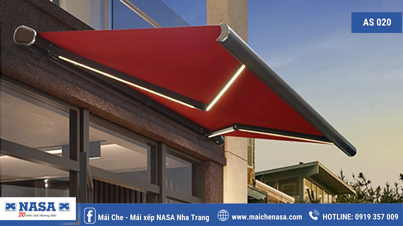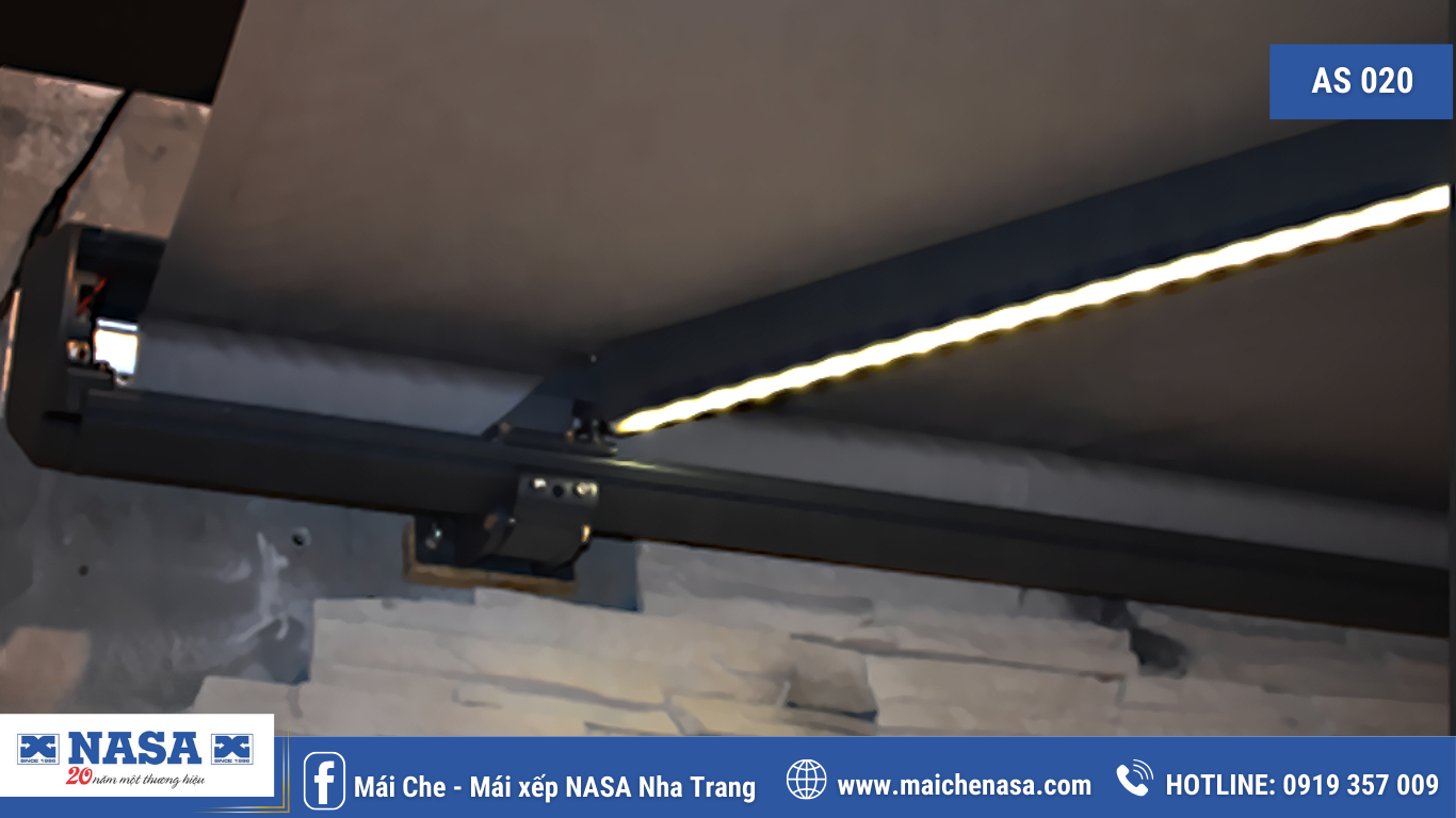 Mái hiên AS 020 có thể tích hợp với hệ thống đèn LED chạy dọc cánh tay càng, hãy thông báo với NASA Nha Trang nếu bạn muốn sử dụng tay càng có đen LED.