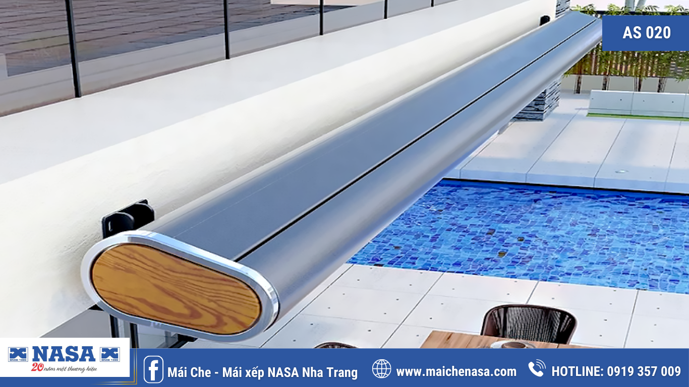 Thuộc dòng hệ mái hiên di động cao cấp của NASA Nha Trang. Có kết cấu thiết kế khung đặc biệt để bảo vệ hệ thống chuyển động, dùng vật liệu nhôm sơn tĩnh điện. Khi thu vào sẽ tạo thành một hộp kín rất thẩm mỹ không ảnh hưởng đến vẻ ngoài của công trình.